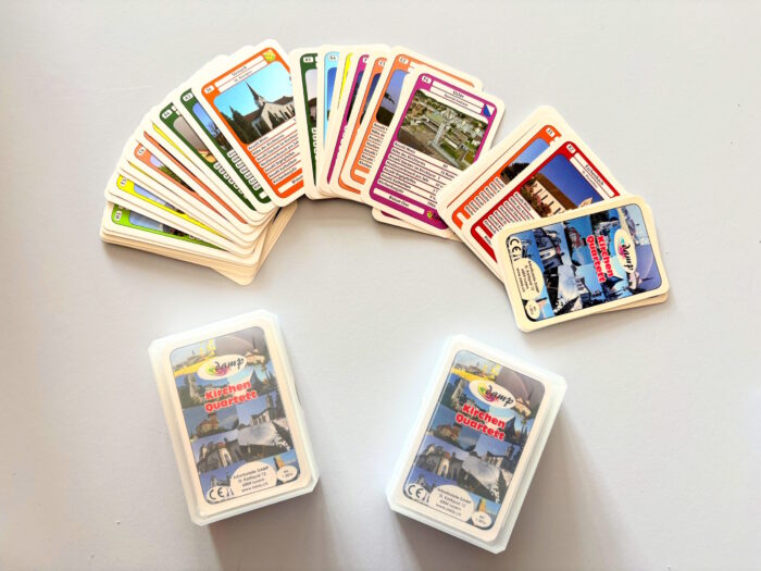 Nach dem Aufruf in der Mininews im Jahr 2016 sind rund 80 Formulare aus diversen Pfarreien, mit Angaben über ihre Kirchen und Ministrant*innen, eingegangen. Daraus konnten wir im Sommer 2016 das KirchenQuartett mit 40 Kirchen produzieren lassen.