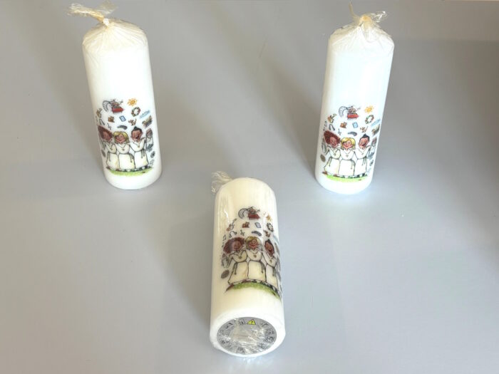 Extra für die Ministrant*innen kreierte Agnes Avagyan von «Agnes Karikaturen» diese schöne Kerze, mit vielen Gegenständen und Ereignissen aus dem Alltag der Minis.